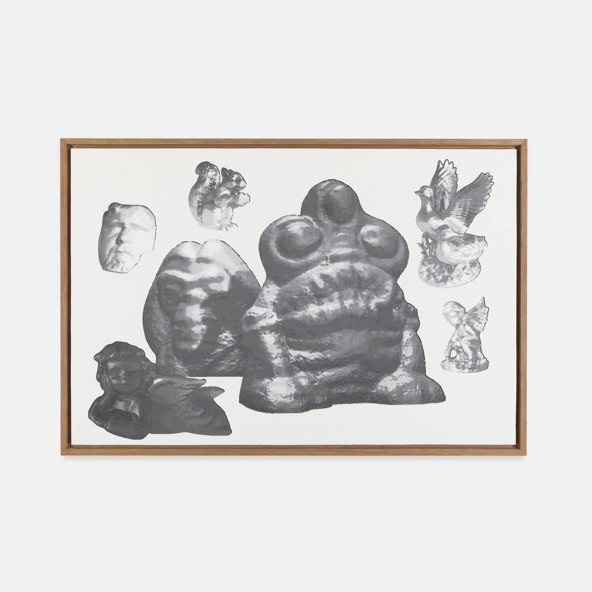 Plata sobre papel con marco de madera